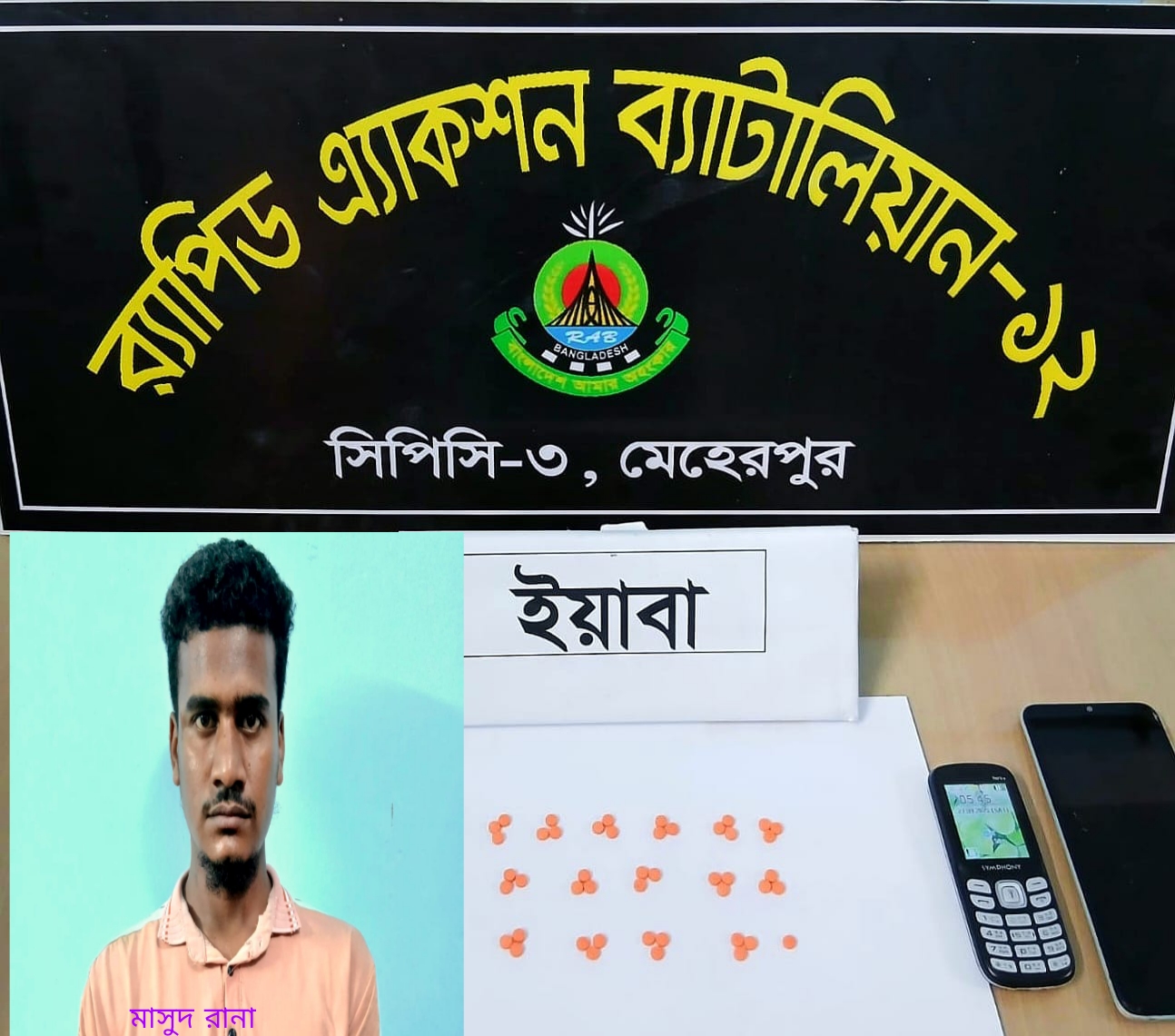 মেহেরপুরের গাংনীতে ইয়াবাসহ গ্রেপ্তার এক মাদক ব্যবসায়ী
